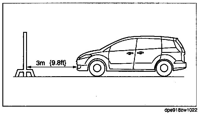 5. Line up the headlights with the white screen at a distance of 3 m {9.8 ft} apart.