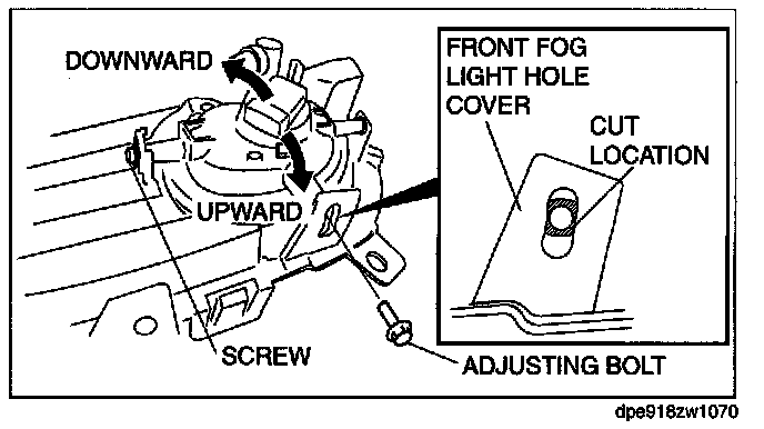 9. Remove the adjusting bolt and cut the front fog light hole cover at the position shown in the figure.
