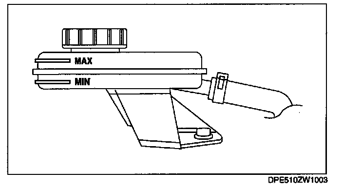 The fluid in the reservoir tank must be maintained between the MIN/MAX level during replacement.