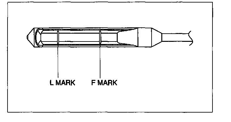 5. Remove the dipstick and verify that the oil level is between the F and L marks on the dipstick.