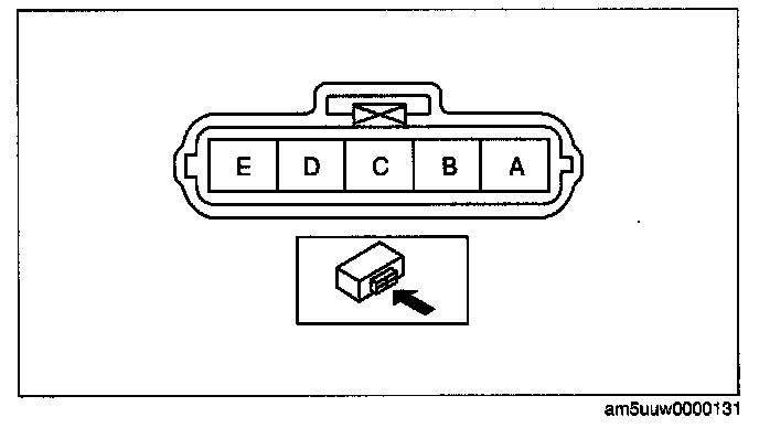 2. Verify that the resistance between MAF sensor terminals D and E is within the specification.