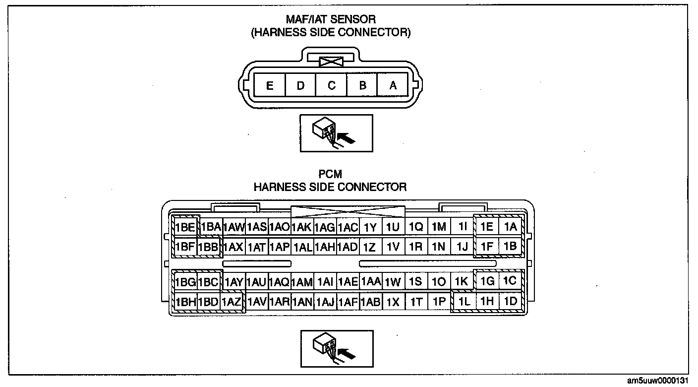 - MAF/IAT sensor terminal E and PCM terminal 1AV