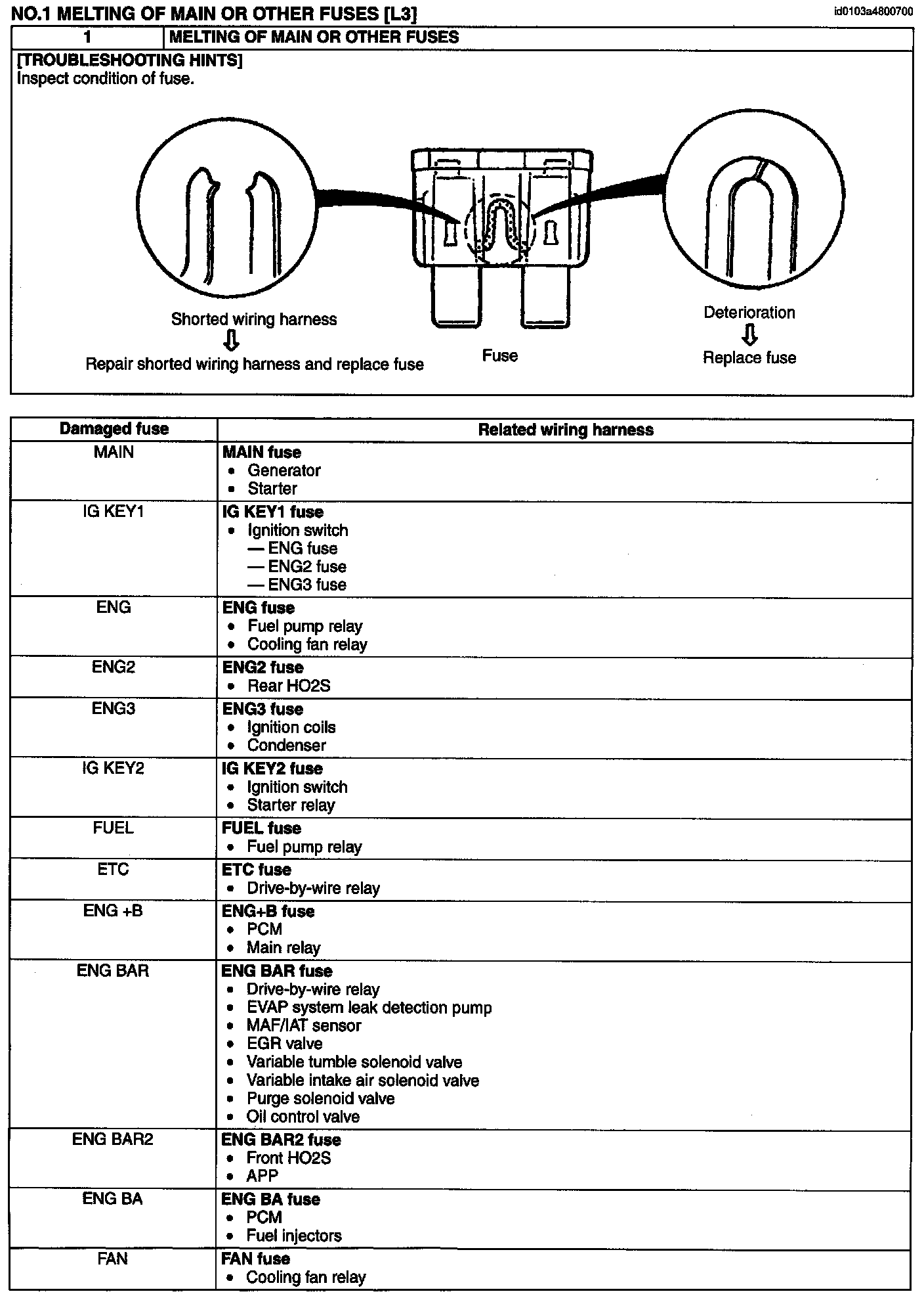 No.1 Melting Of Main Or Other Fuses: