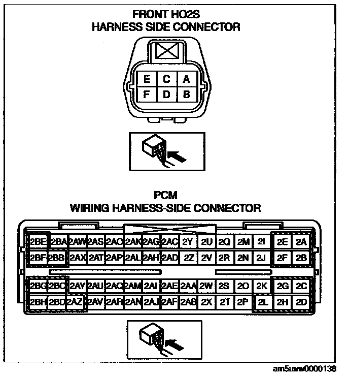- Front HO2S terminal B and PCM terminal 2AD