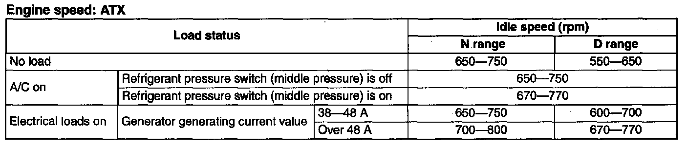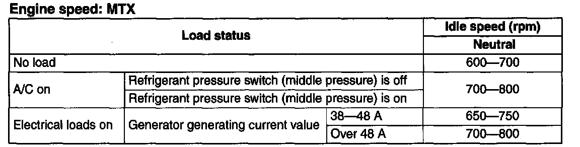 NOTE: Excludes temporary idle speed drop just after the loads are turned on.