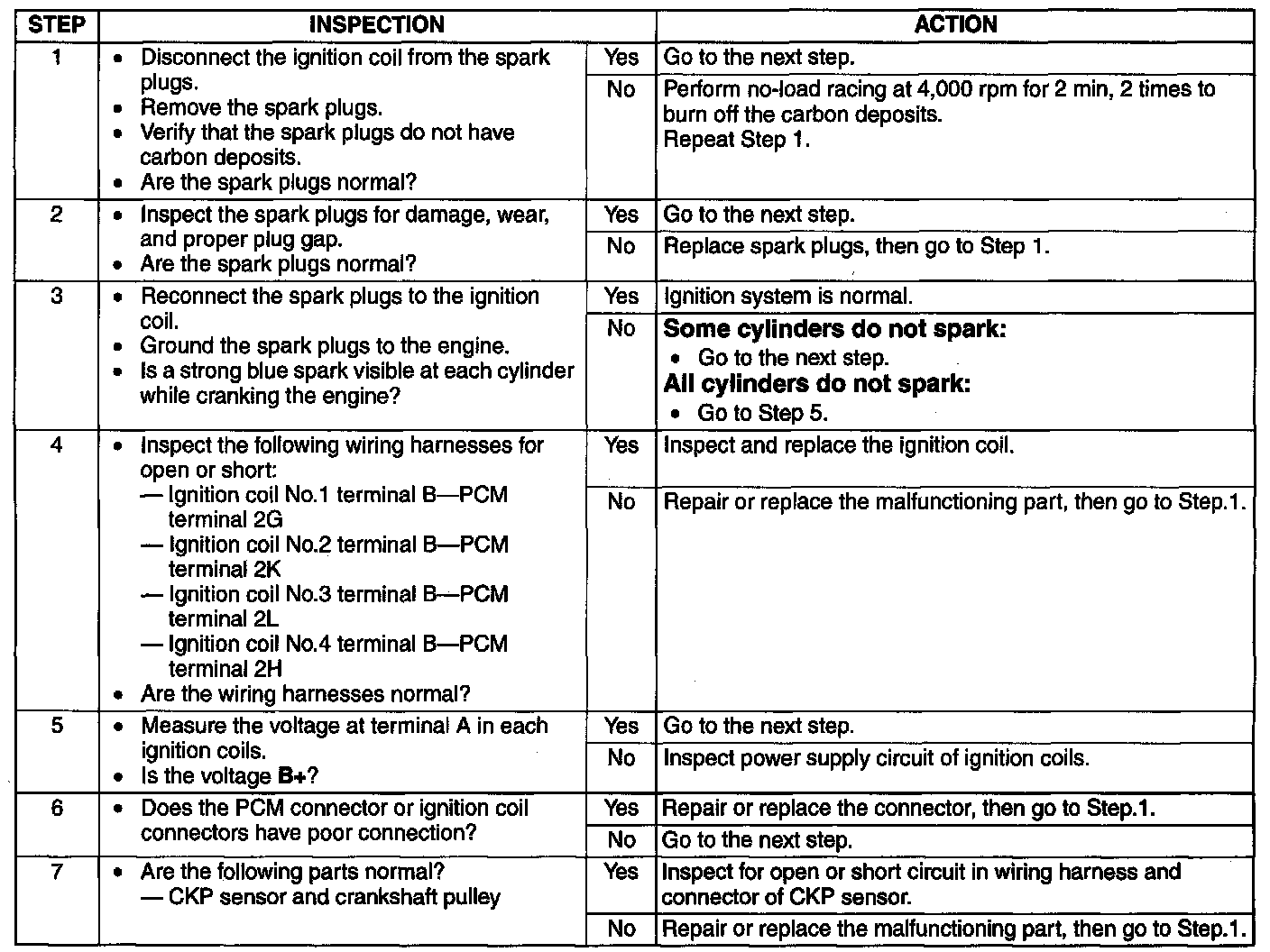 WARNING: High voltage in the ignition system can cause strong electrical shock which can result in serious injury. Avoid direct contact to the vehicle body during the following spark test.