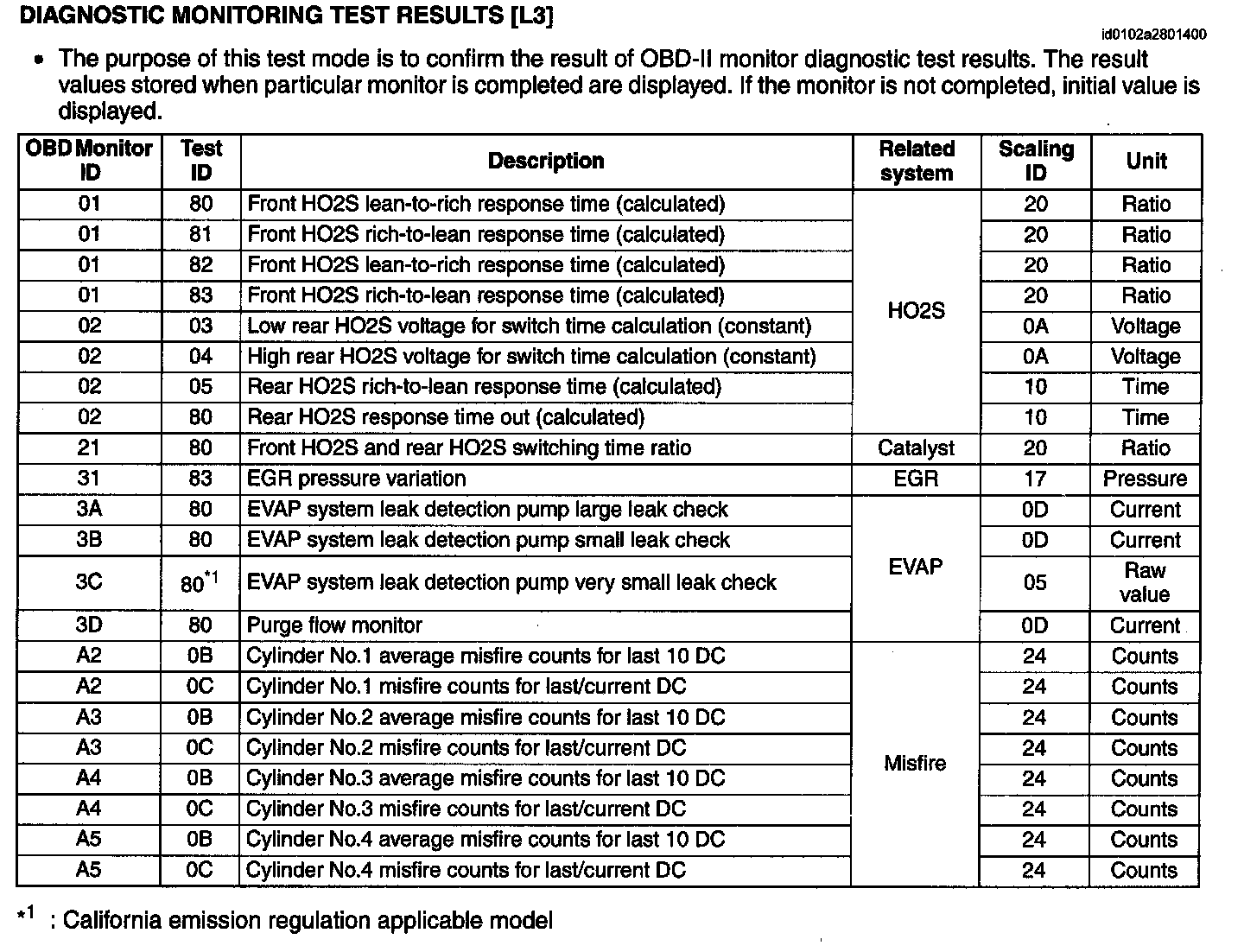 Diagnostic Monitoring Test Results