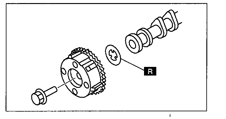 ^ Intake camshaft sprocket is integrated with the variable valve timing actuator and cannot be disassembled.