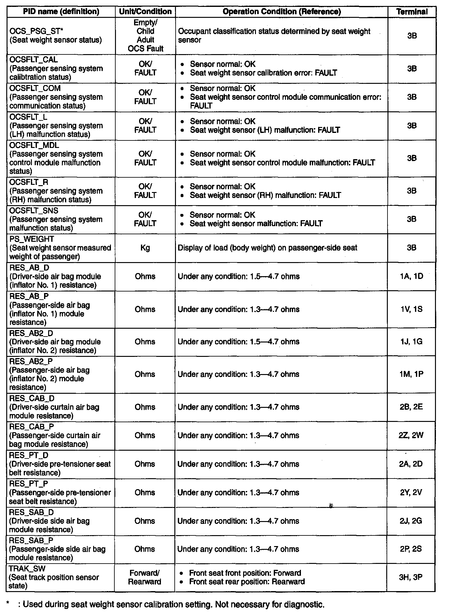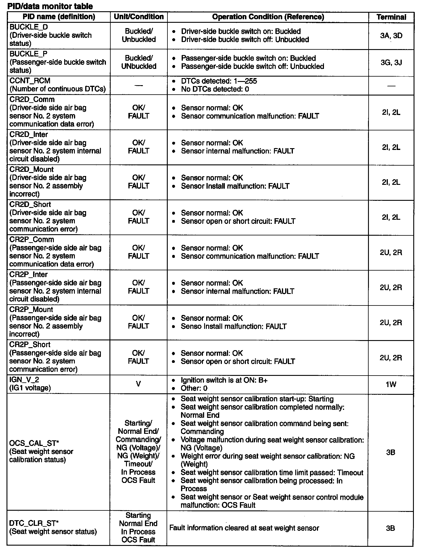 PID/DATA Monitor Table: