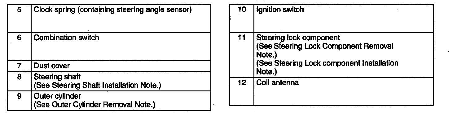 Steering Lock Component Removal Note
