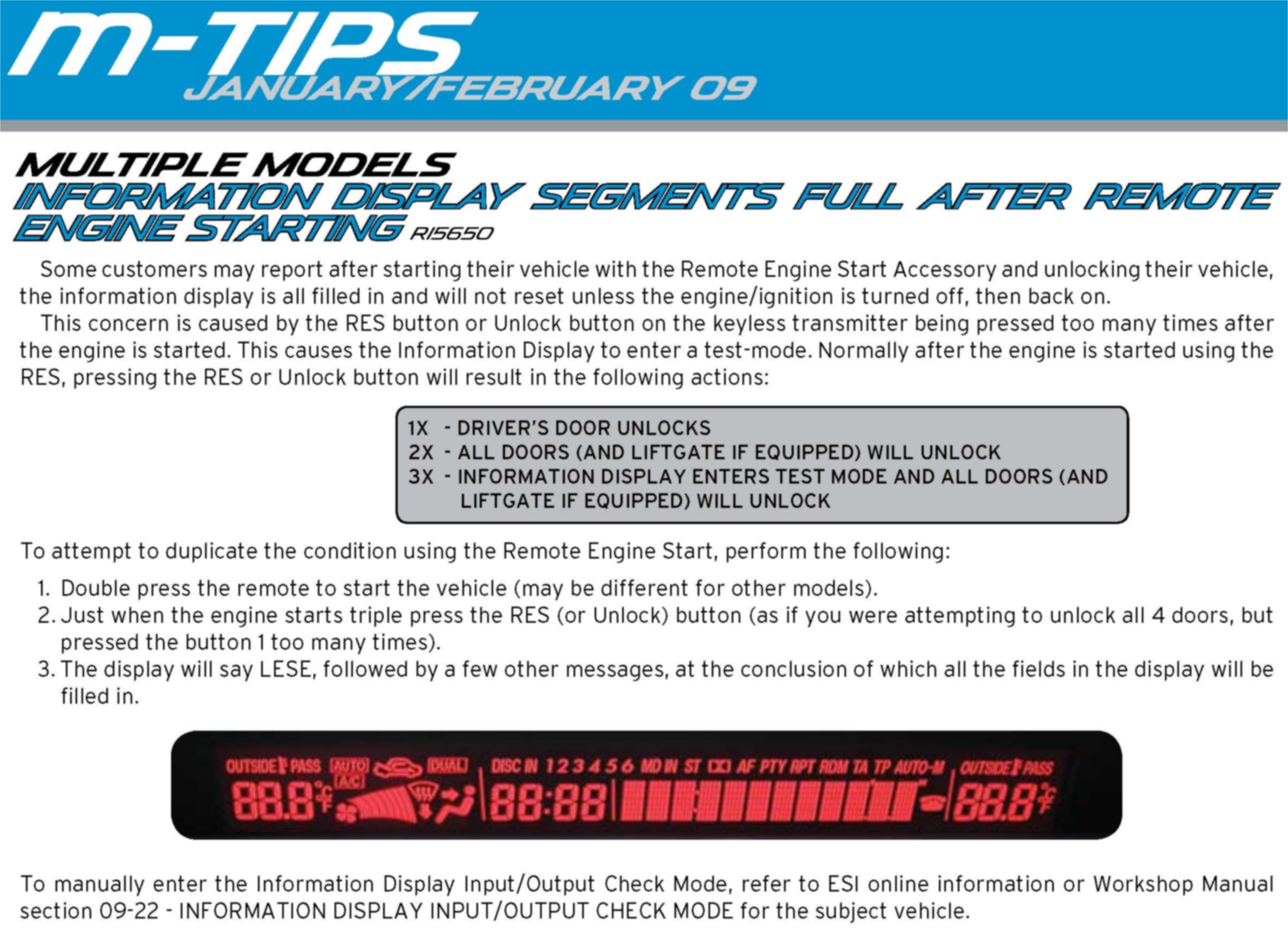 Instruments - Info. Display Full Afetr Remote Start