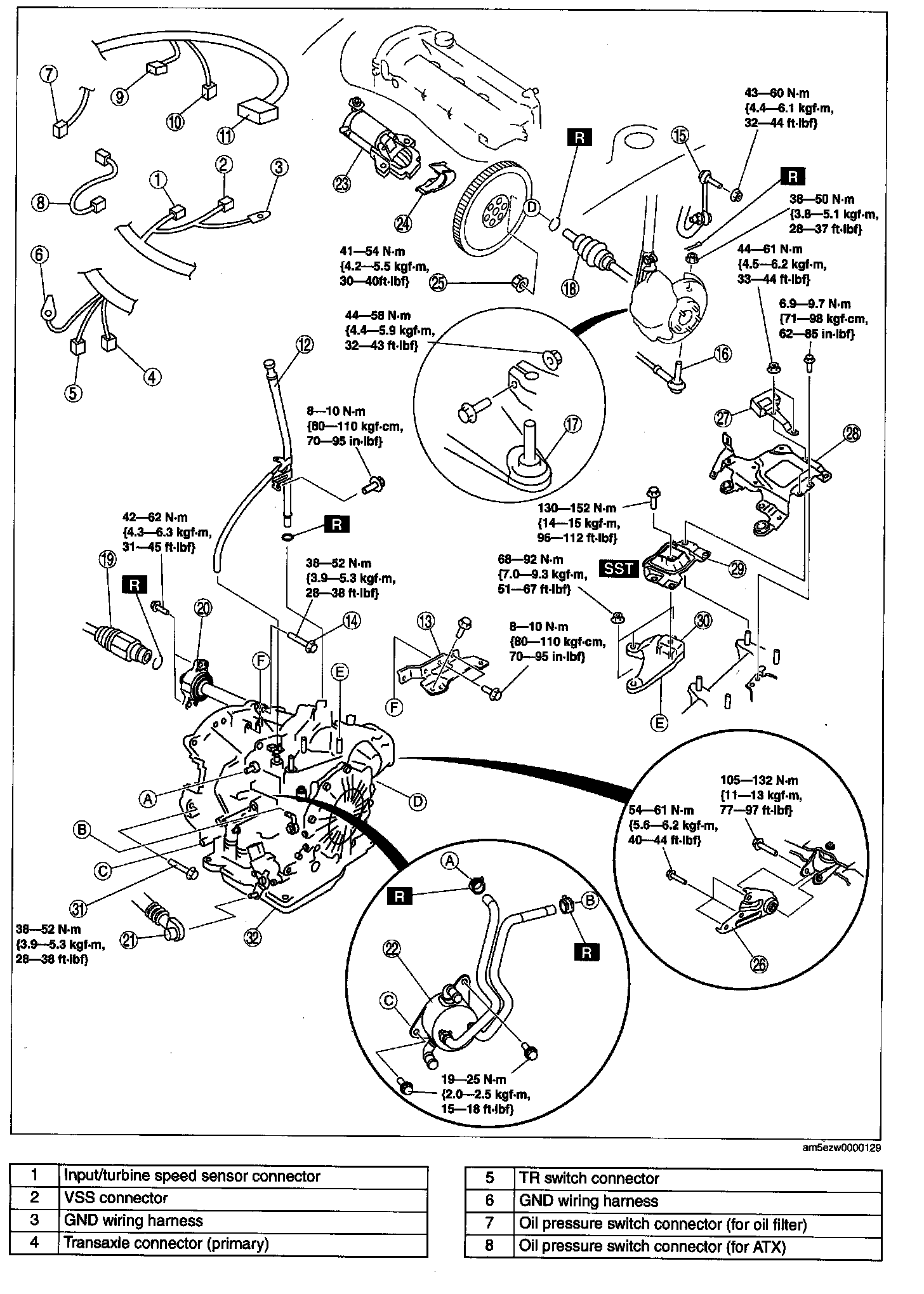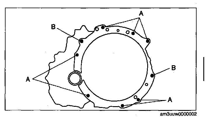 ^ Loosely and equally tighten the torque converter nuts, then further tighten them to the specified tightening torque.