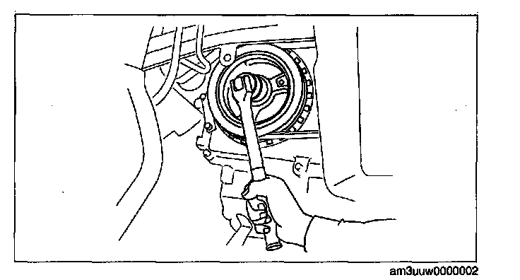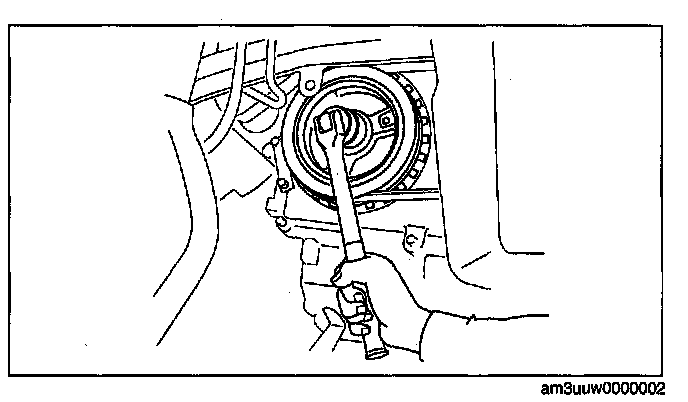 1. Hold the crankshaft pulley to prevent the drive plate from rotating.