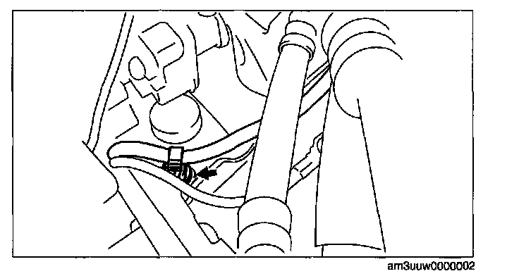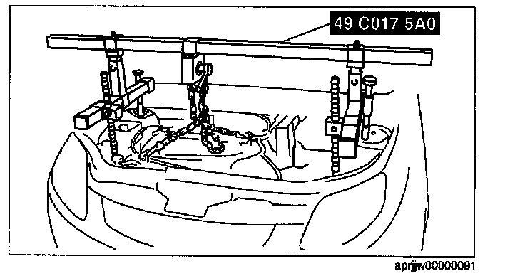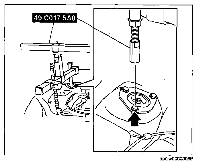 1) Install the right rear shaft of the SST to the bolt of the right shock absorber as shown in the figure.