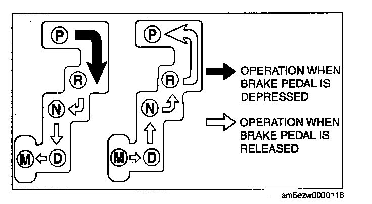 2. Verify that the selector lever can be shifted as shown in the figure.