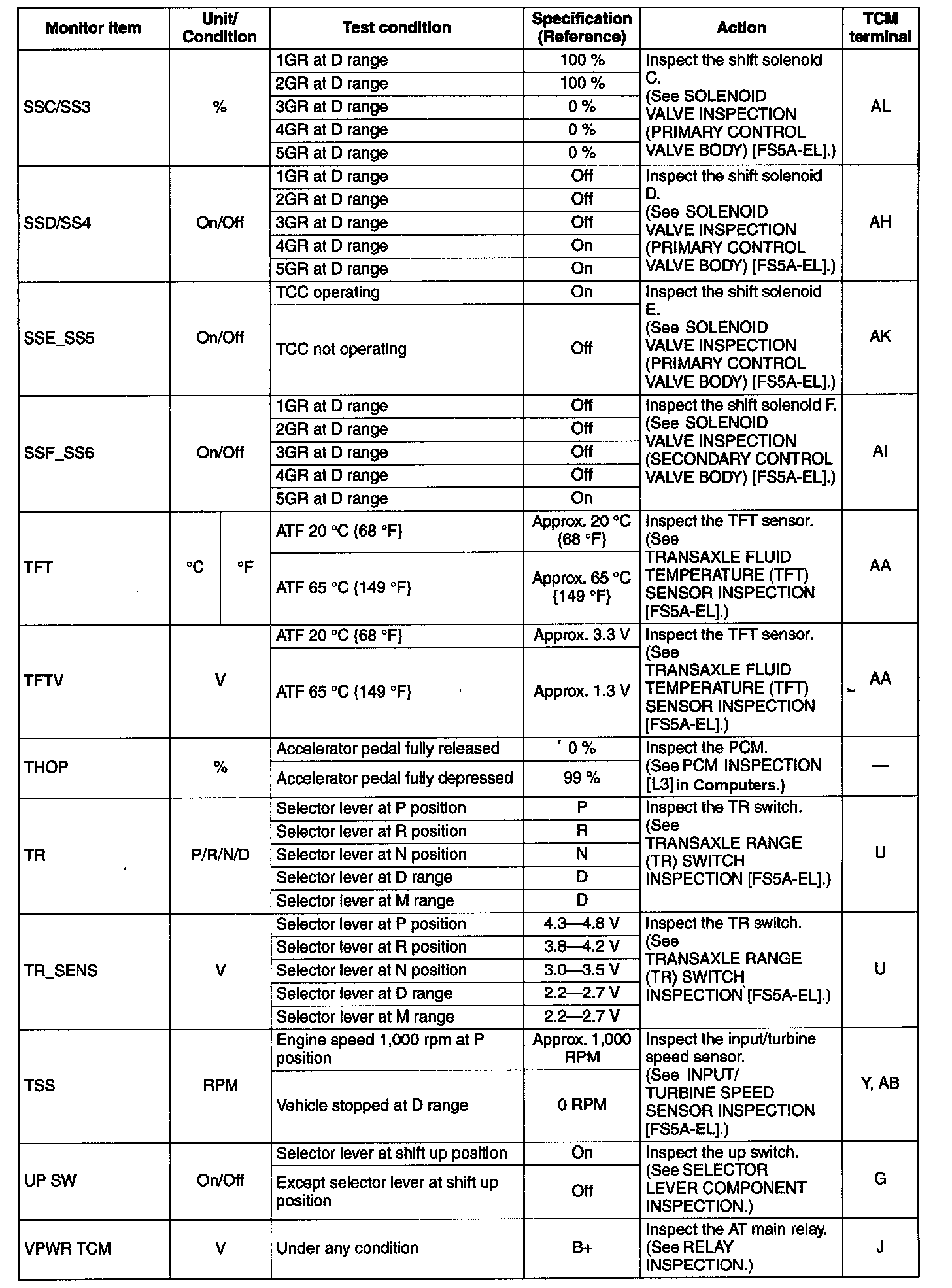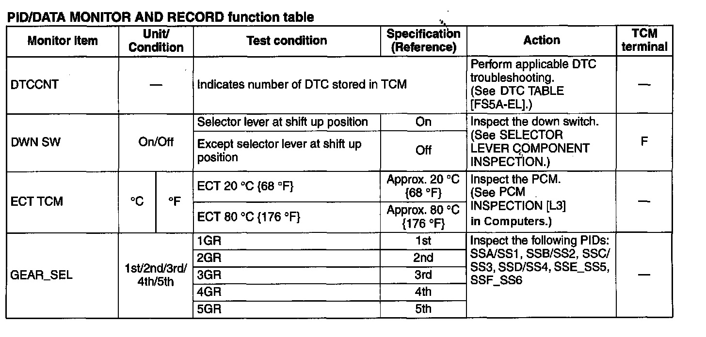 PID/DATA MONITOR AND RECORD function table