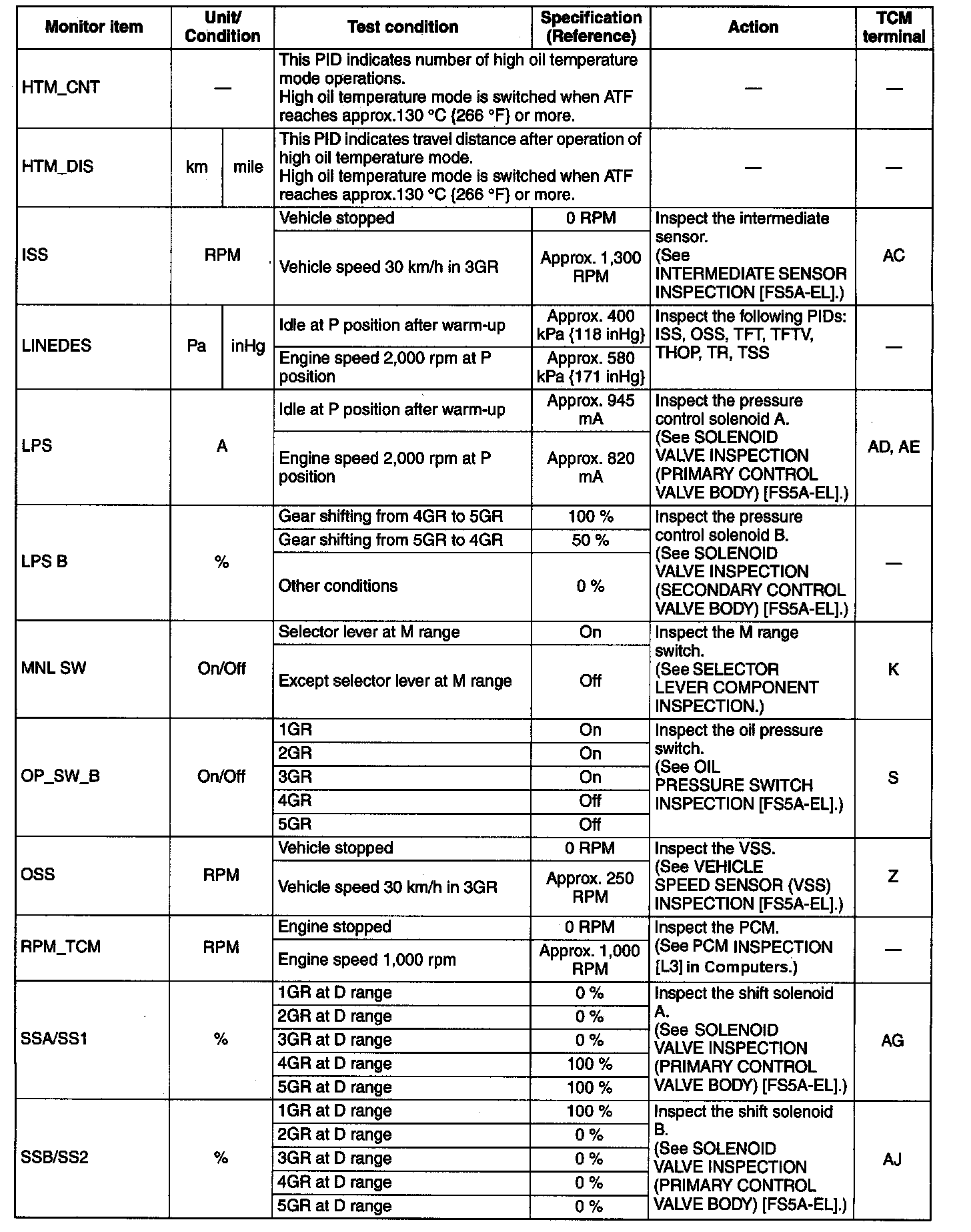 PID/Data Monitor and Record Function Table