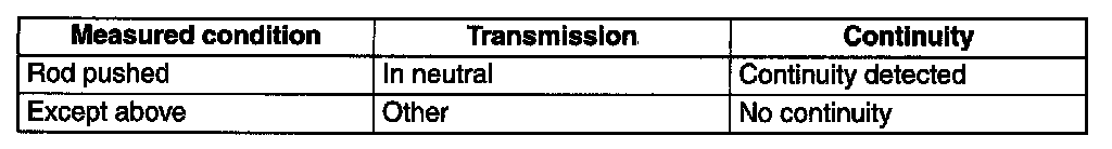 2. Verify that the continuity between neutral switch terminals A and B is as indicated in the table.