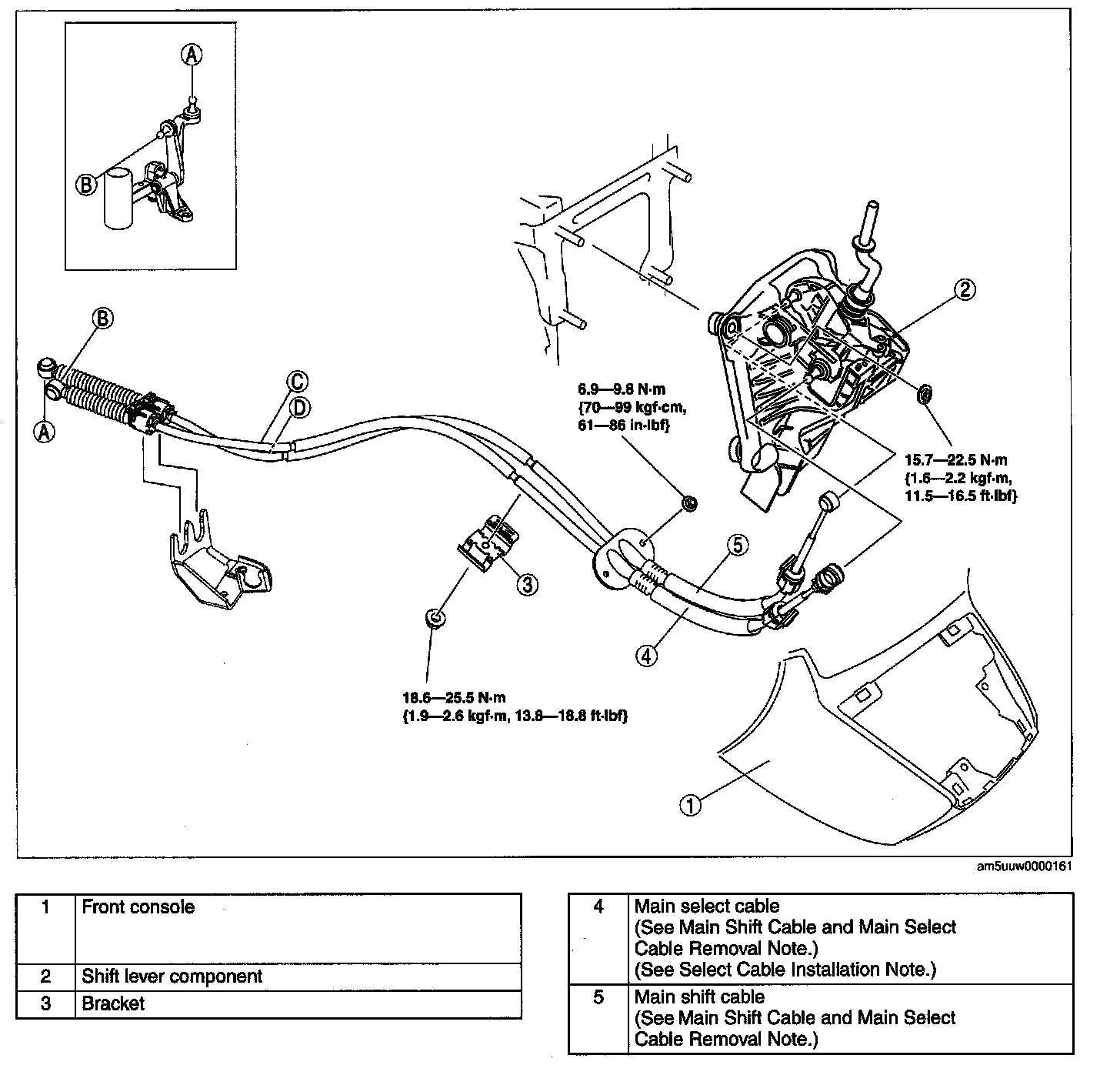 Main Shift Cable and Main Select Cable Removal Note