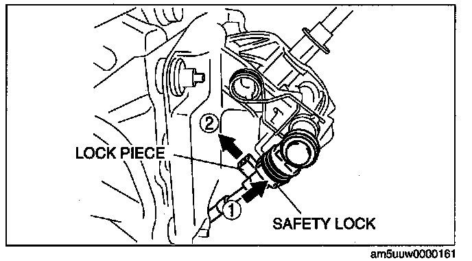 2. Push the safety lock, then unlock the lock piece of the select cable in the order shown in the figure.