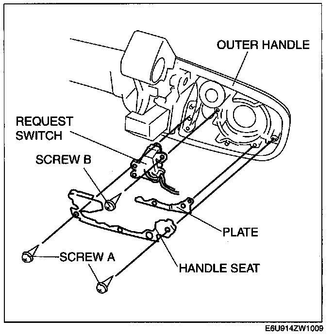 5. Remove screw B, then remove the request switch.
