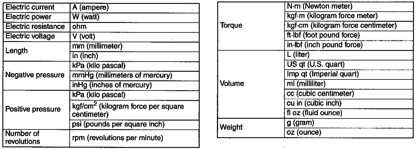 - All numerical values in this manual are based on SI units. Numbers shown in conventional units are converted from these values.