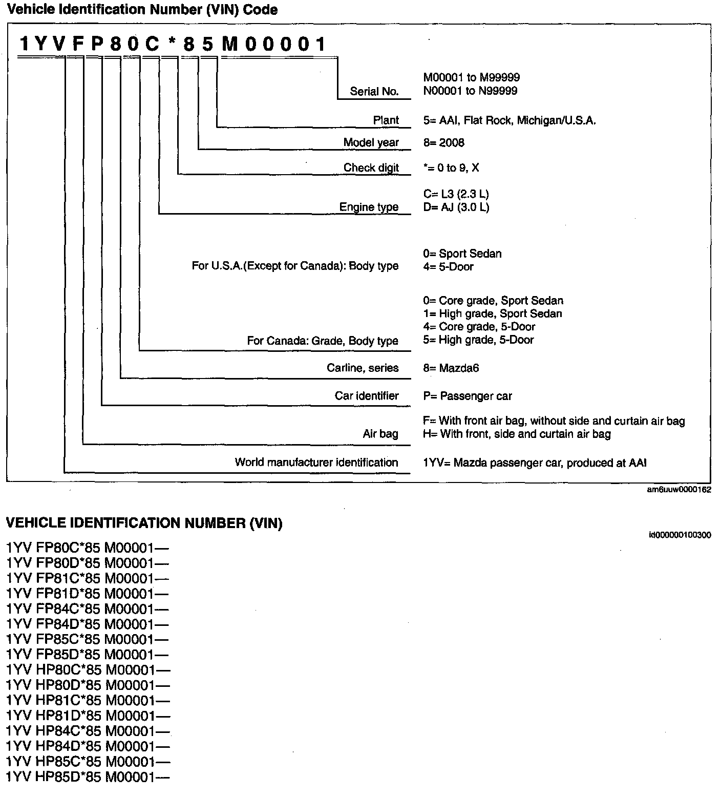 Vehicle Identification Number (VIN) Code: