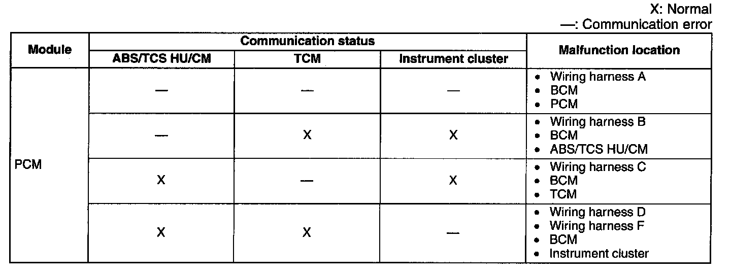 4. Referring to the following table, determine the malfunctioning part of the CAN system.