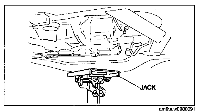 1. Support the crossmember component with a jack and remove the nuts.