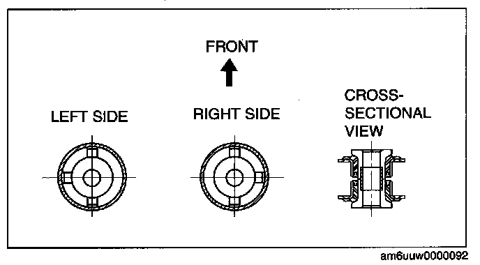 ^ The bushings must be installed with correct orientation as shown below, or increased noise and vibration may result.
