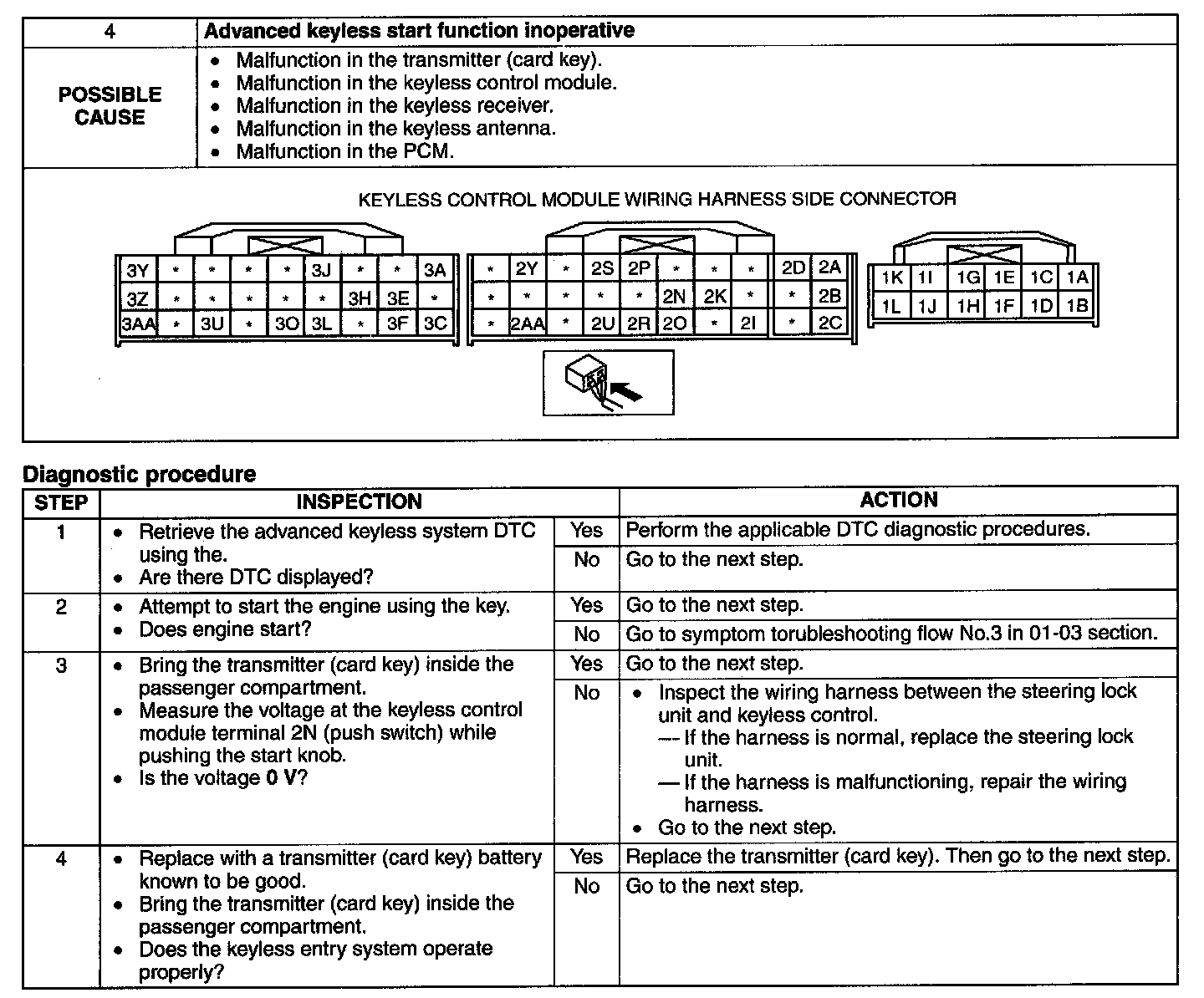 No.4 Advanced Keyless Start Function Inoperative