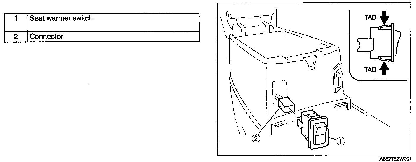 1. Squeeze the tabs of seat warmer switch and pull it outward to remove it.