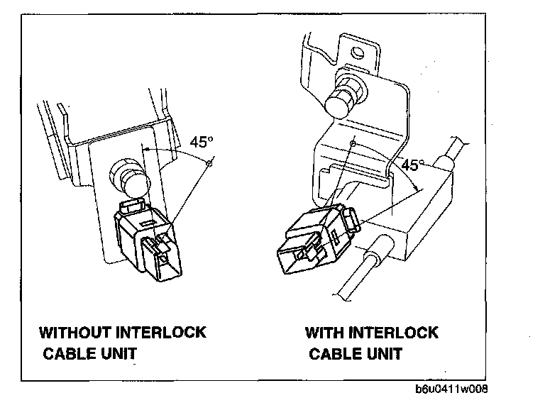 1. For models with an interlock cable unit, remove the lock unit with the brake switch.