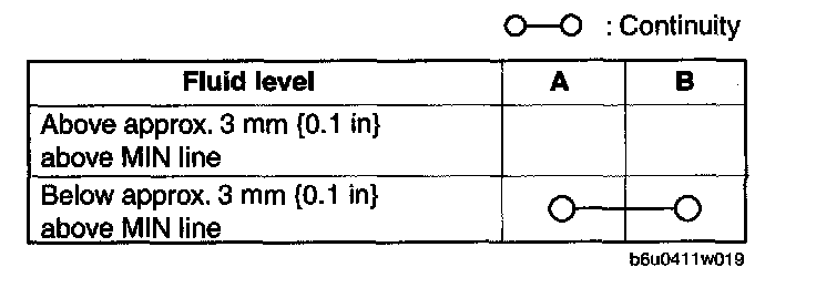 ^ If not as specified, replace the fluid level sensor.
