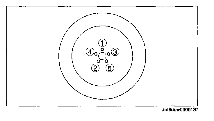 1. When installing the wheels and tires, tighten the wheel nuts in a criss-cross pattern to the following tightening torque.