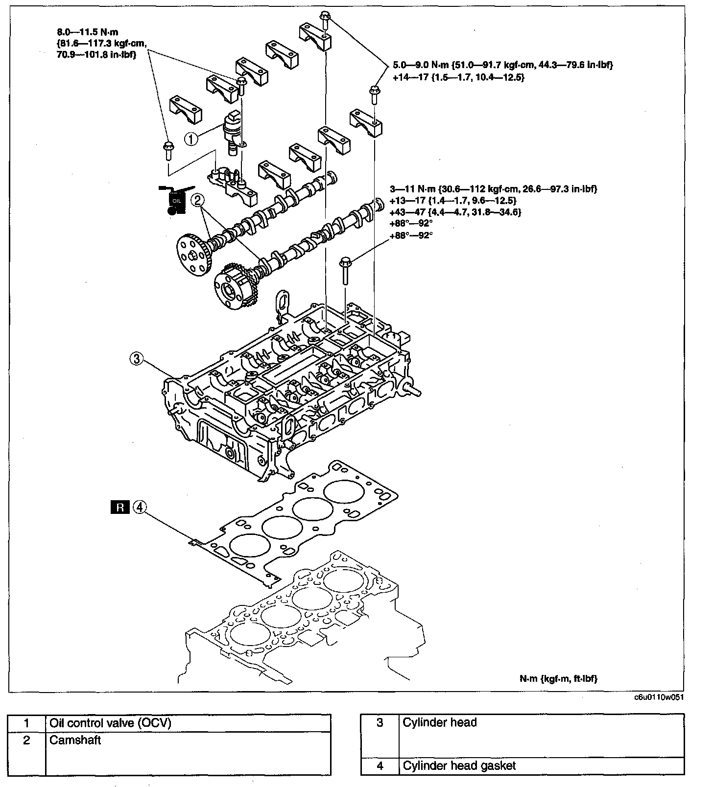^ The cylinder head and the camshaft caps are numbered to be reassembled in their original position correctly. When removed, keep the caps with the cylinder head they were removed from. Do not mix the caps.