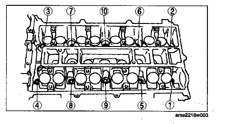 1. Loosen the cylinder head bolts in two or three steps in the order shown in the figure.