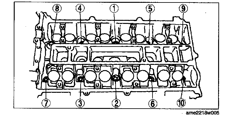 2. Tighten the cylinder head bolts in the order shown following 5 steps.
