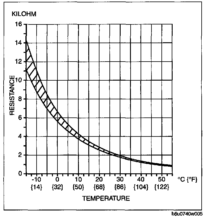 - If the resistance is not as shown in the graph, replace the passenger compartment temperature sensor.