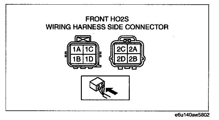 2. Measure the resistance between front HO2S terminals 2B and 2D.