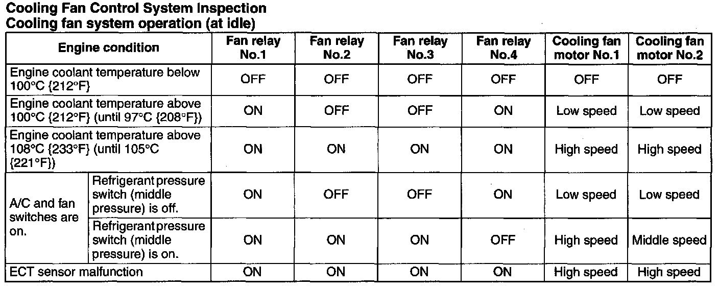 - If the cooling fan relay does not operate high speed and cooling fan No.2 is operating low speed, inspect the following: