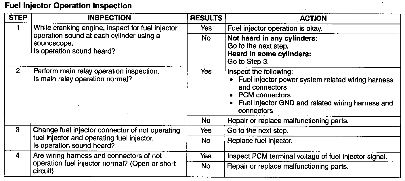 Fuel Injector Operation Inspection