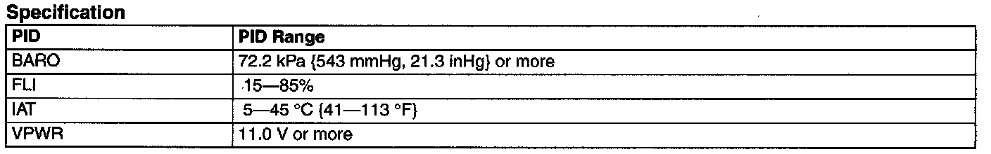 2. Verify that all of the following PIDs are within the specifications at the pre-test confirmation screen.