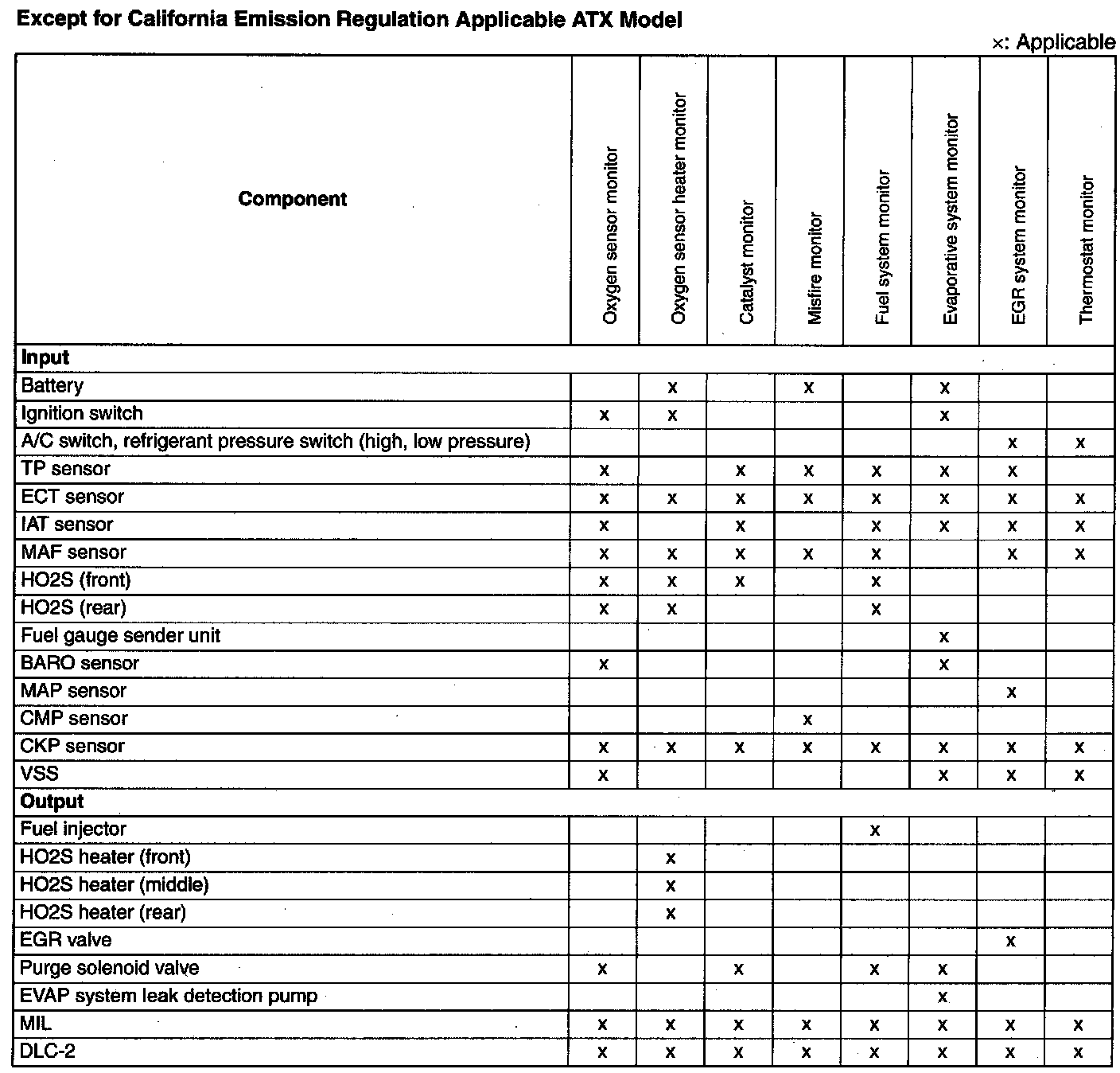 California Emission Regulation Applicable ATX Model: