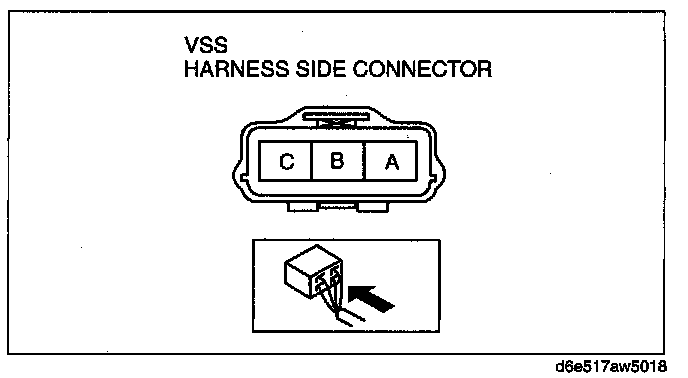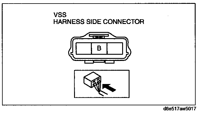 3. Measure voltage at VSS connector terminal B (wiring harness side).
