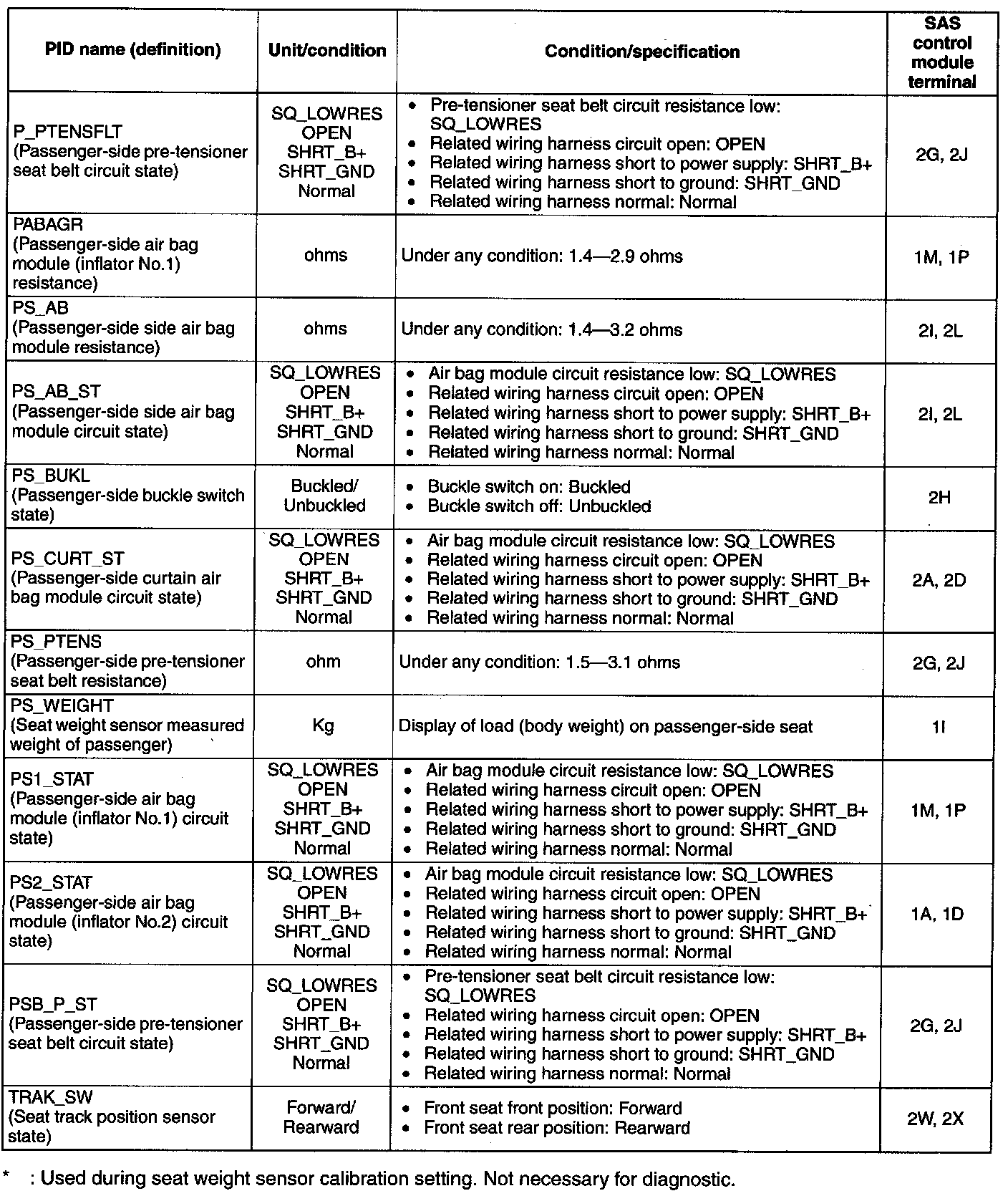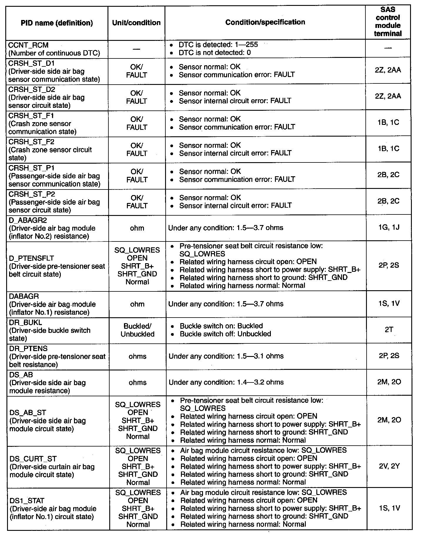 PID/DATA Monitor Table ( Part 3):