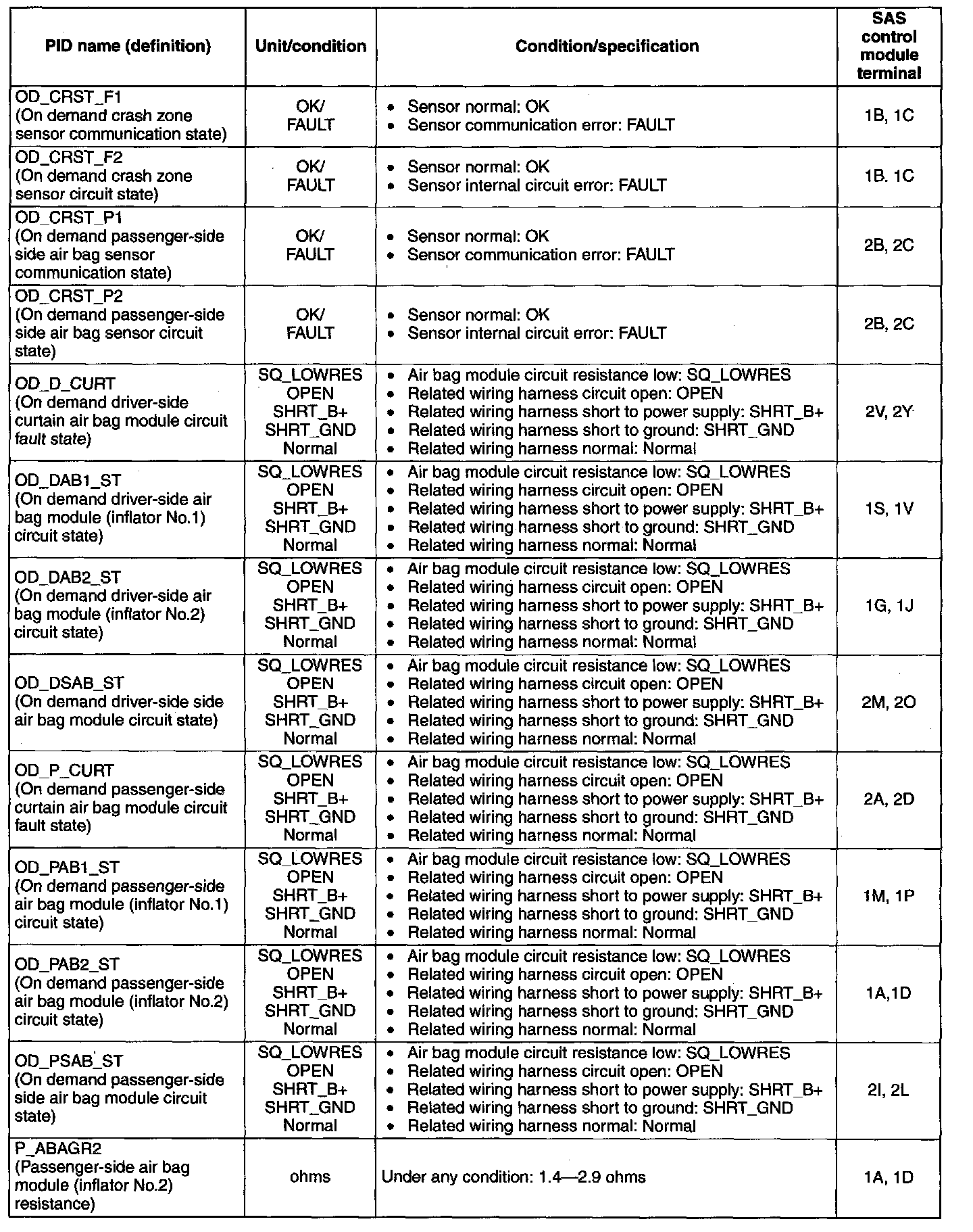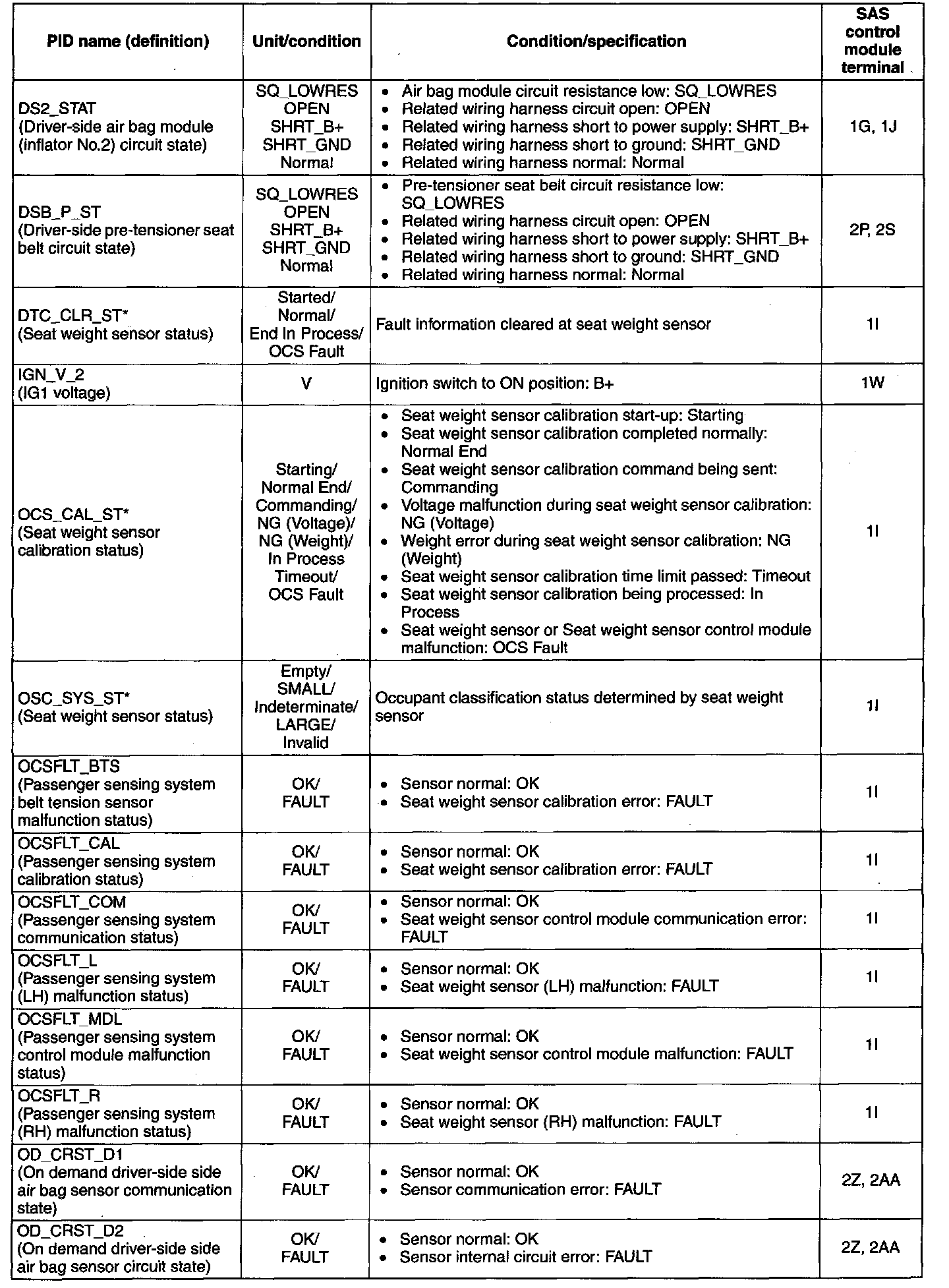 PID/DATA Monitor Table ( Part 2):