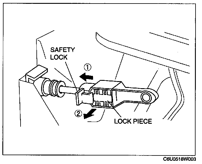 3. Unlock the lock piece of the selector cable (selector lever side) in the order shown in the figure.