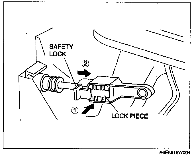 5. Lock the lock piece of the selector cable (selector lever side) in the order shown in the figure.
