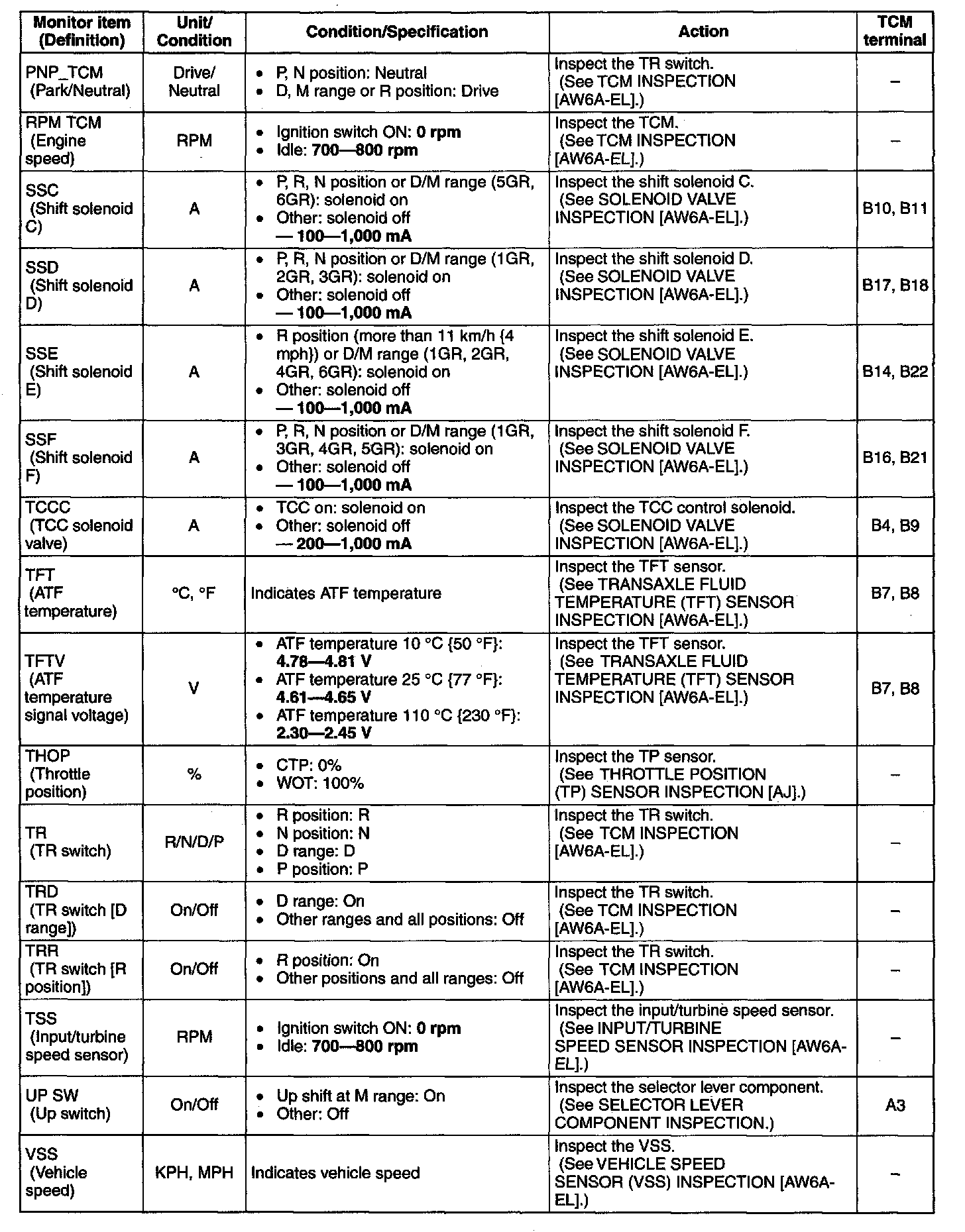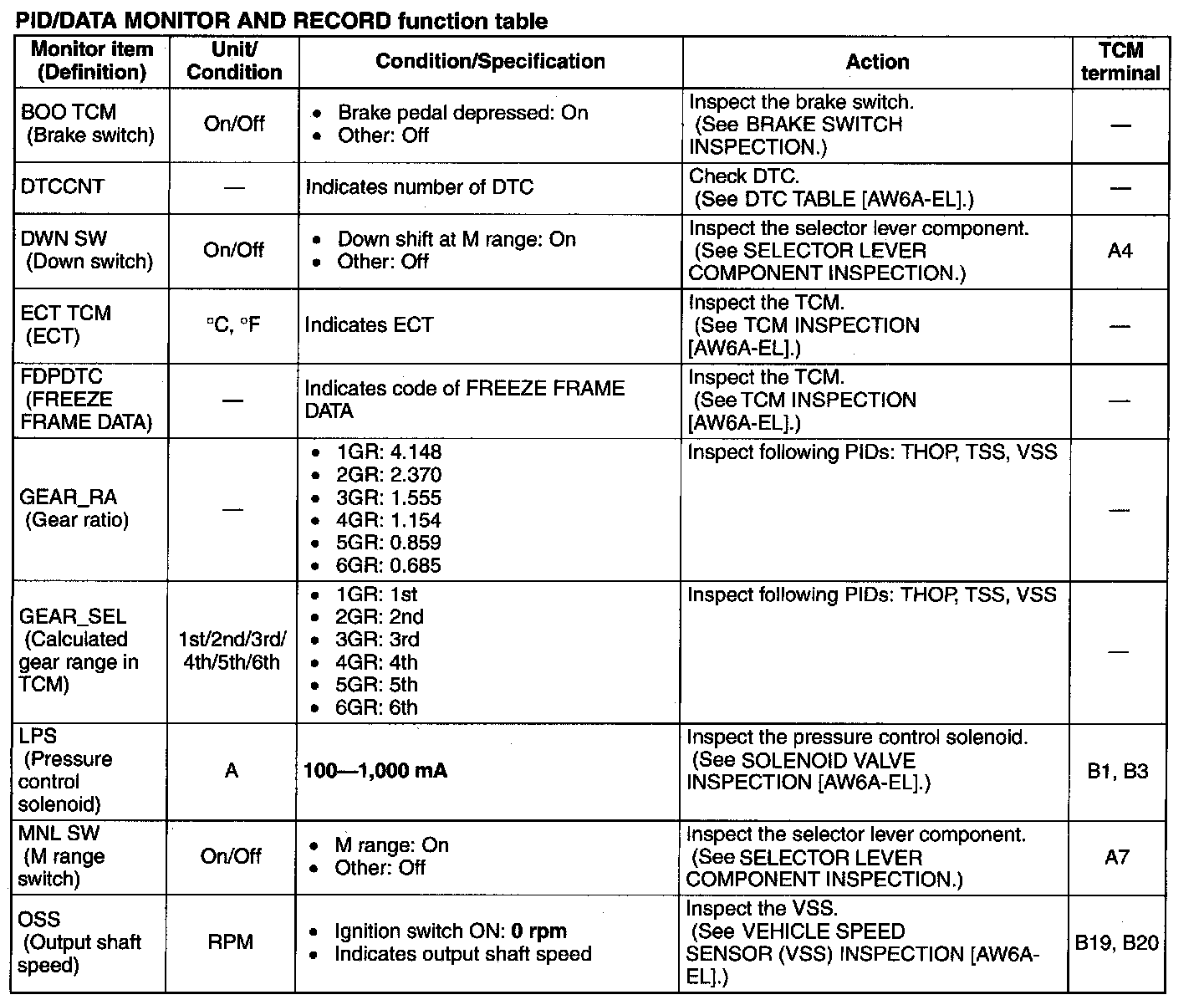 PID/DATA MONITOR AND RECORD function table (Part 1):